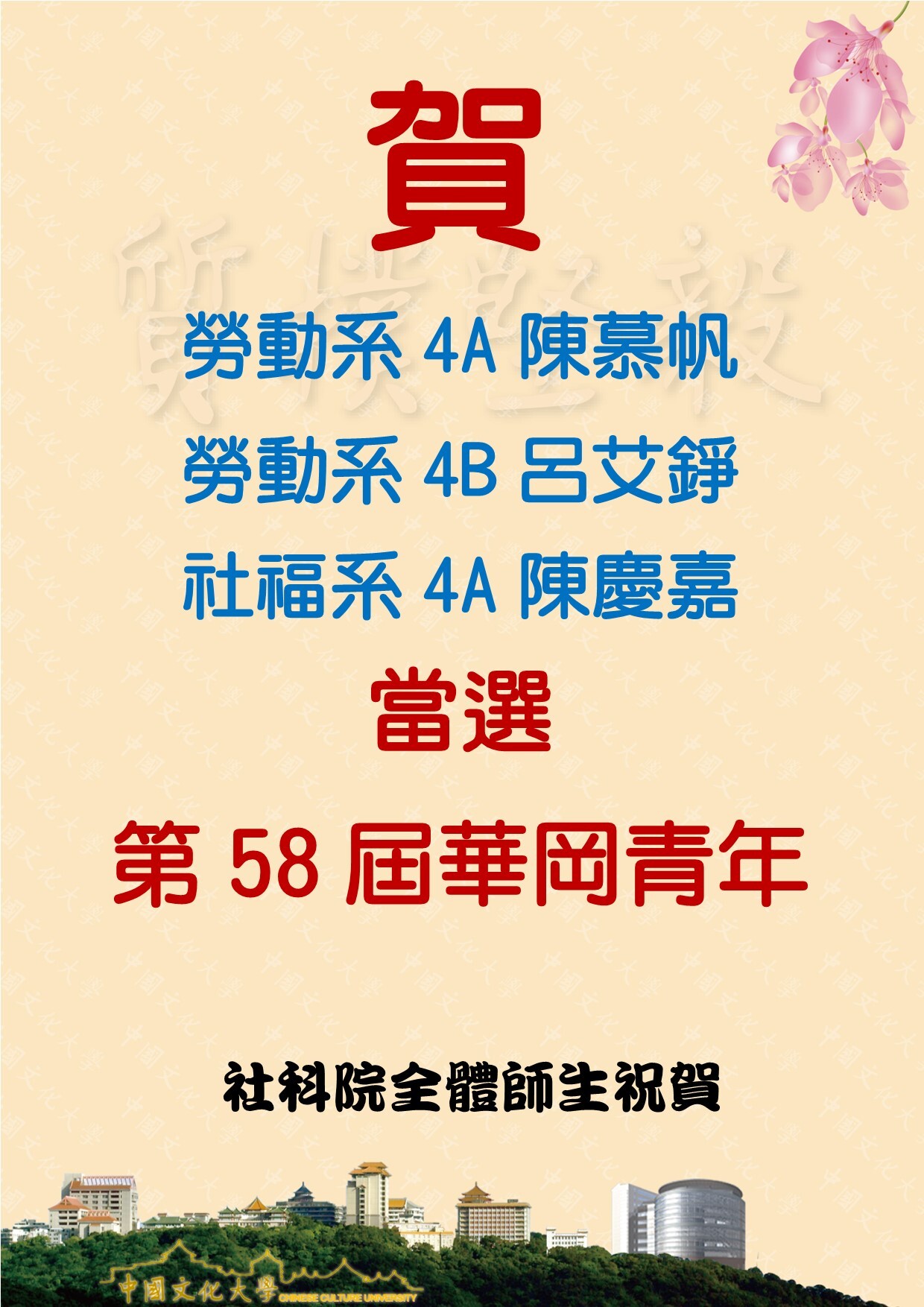 【第58屆華岡青年】賀本院陳慕帆、呂艾錚、陳慶嘉獲獎