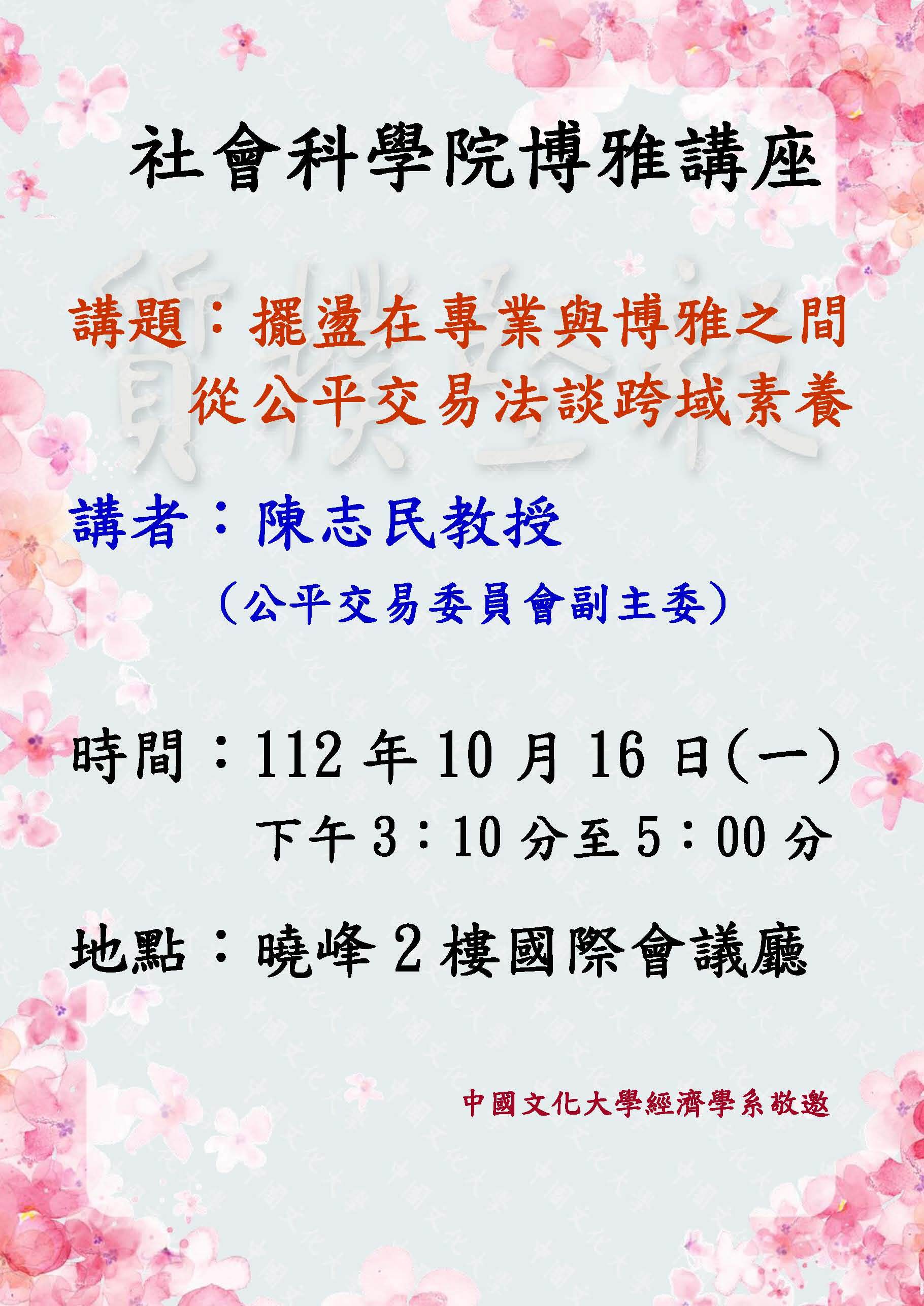 講座日期:112年10月16日(週一)下午3:10至5:00